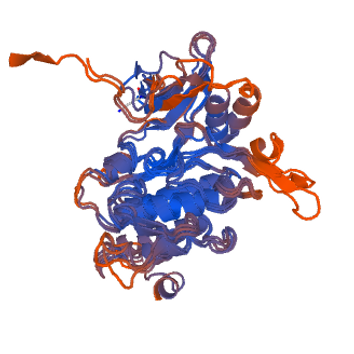 Figure 11: A 3D structure of the Kinase Domain of TESK1 predicted using swiss-model, three of the predicted models are superimposed on one another.
